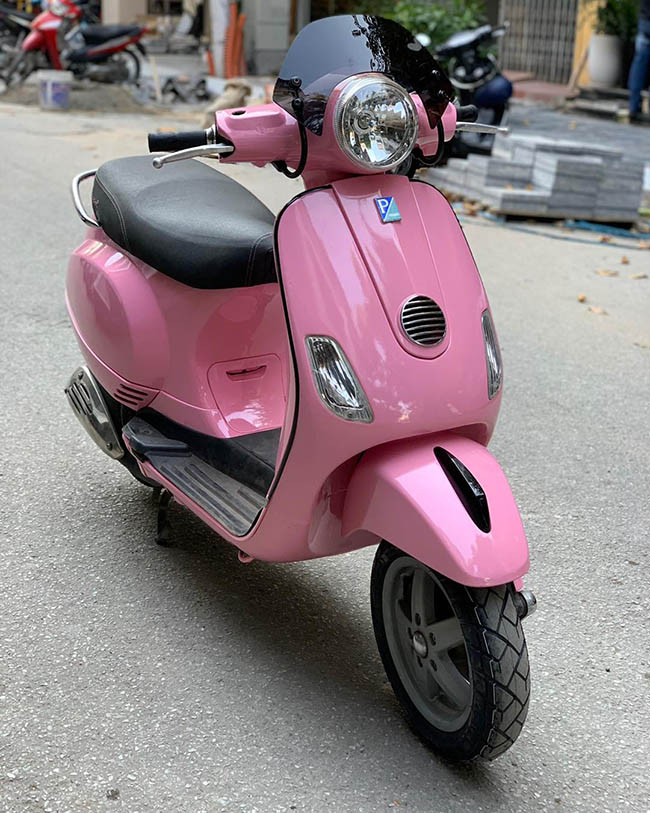 Mẫu xe vespa khá nhẹ nhàng và nhỏ nhắn, nên rất được lòng chị em phụ nữ. Việc đổi màu xe vespa sang màu hồng sẽ khiến cho xế yêu của bạn nổi bật khi đang dạo phố. Những phần mép, phần viền được cắt ghép hoàn hảo tạo nên một siêu phẩm sang chảnh dành cho quý cô.